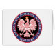 This colourful round design features the Polish Eagle with a gold crown, the national emblem of Poland, surrounded by the words Polish American. Take pride in your United States of America and Poland heritage.
