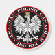 This colourful round design features the Polish Eagle outlined in black with a gold crown, the coat of arms of Poland, surrounded by the words Polish Canadian. Great gift for that anyone proud of their Poland and Canada roots.