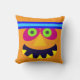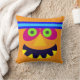 Round pouf with funny monster. A Fun decorative throw pillow in orange a nice addition to your Halloween decorations.
