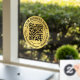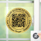 Modern, elegant round black QR code and circle text with frame on a gold foil background window decal. Insert your QR code with a transparent background as an ~.svg, ~.ai or ~.png file. You can replace the gold foil background with an image of your choice. Transform your storefront or car windows into powerful marketing tools! y.BEE PAPERIE #ZazzleMade #businessdoordecals #RoundQRCodedecals #QRCodedoorsticker