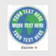 Round save planet earth custom vinyl stickers. Blue and green world map globe logo with white text template. Create stickers for global warming, climate change environmental issues, nature preserve, green energy, forest protection, protests, plastic soup, recycle, recycling etc. Land sea drawing. Save the planet, save the earth!