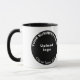 Black customisable combo mug with round shape business brand. Mug that you can use in your coffee shop, diner or restaurant business to build brand name awareness while your customers enjoy sipping the aromatic and tasty coffee or tea that you served to them. Mug as promotional product, giveaway item or gift to your customers or clients, a marketing strategy to advertise your business or to promote your brand. To customise this mug, upload your business logo, type your business name, city or town and state. Please check the appearance on front and back sides after uploading logo and typing texts. If the appearance is pleasing to you, you can place your order now. If you need to resize and move the logo and texts to fit in the template of this mug or on the size and style that you will choose, please change in the design tool. You can also make other changes in the design tool such as changing the font colour, font style, colour of the round shape and adding background colour.