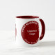 Maroon customisable combo mug with round shape business brand. Mug that you can use in your coffee shop, diner or restaurant business to build brand name awareness while your customers enjoy sipping the aromatic and tasty coffee or tea that you served to them. Mug as promotional product, giveaway item or gift to your customers or clients, a marketing strategy to advertise your business or to promote your brand. To customise this mug, upload your business logo, type your business name, city or town and state. Please check the appearance on front and back sides after uploading logo and typing texts. If the appearance is pleasing to you, you can place your order now. If you need to resize and move the logo and texts to fit in the template of this mug or on the size and style that you will choose, please change in the design tool. You can also make other changes in the design tool such as changing the font colour, font style, colour of the round shape and adding background colour.