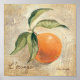 © Silvia Vassileva / Wild Apple. This vintage looking image features a round, shiny orange with leaves on top. This image would look great in a dining room or a kitchen.