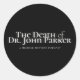 Round stickers with the official "The Death of Dr. John Parker" logo