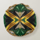 Jamaican Colours Round Throw Pillow, 3D Porcelain Effect, Jewellery-Inspired Detailing, Green, Yellow, and Black Colours, Luxurious and Vibrant, Decorative and Comfortable, High-Quality Fabric, Adds Cultural Pride to Your Home, Perfect Gift for Jamaican Heritage Lovers, Unique Design with a Sophisticated Flair, Great for Living Room, Bedroom, or Office.