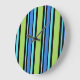 A chic Wall Clock with a deckchair-striped Blue Moons pattern in Turquoise, Neon Green, Dazzling Blue and Black. Part of the Posh & Painterly 'Blue Moons' collection.