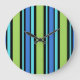 Round Wall Clock, Blue Moons Deckchair Stripes Large Clock