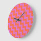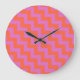 Round Wall Clock, Magenta and Orange Chevrons Large Clock