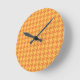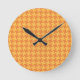 Round Wall Clock, Orange Dogstooth Check Round Clock