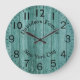 This amazing clock features a wood effect background and would look good on any wall. Clear numerals and minute marks in black make this piece a centre piece in any home. The text can be changed to suit your own requirements.