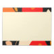 This notepad showcases an illustration based on rounded flowers and petals in red, salmon and orange on its edges