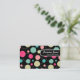 A stylish modern business card template primarily designed for Party and Event Planners. The design has a 3d effect white bordered edge panel for your name or company name with a colourful spots and circles design in the background. This card has two name fields which allows the name on the front to be used as a company name but they can also be the same if you are a sole trader/freelance. Other contact and personal details on the back on a more restful grey background. Ready to be customised with your details. Can also be further customised or adapted to many other types of business