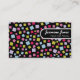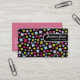 A stylish modern business card template primarily designed for Party and Event Planners. The design has a 3d effect white bordered edge panel for your name or company name with an attractively coloured cascading squares design in the background. This card has two name fields which allows the name on the front to be used as a company name but they can also be the same if you are a sole trader/freelance. Other contact and personal details on the back on a pink background matching the pink in the front graphic. Ready to be customised with your details. Can also be further customised or adapted to many other types of business