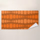 This towel set has a mid-century modern design of rounded rectangles in two shades of orange running vertically on a field of brown.
