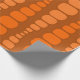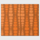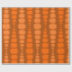This wrapping paper has a mid-century modern design of rounded rectangles in two shades of orange running vertically on a field of brown.