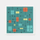 This atomic-age inspired mid century modern design has bold lines and geometric shapes in teal, turquoise, yellow and orange.