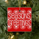 This unique design by birdy27 features a bold red background and a classic "Seasons Greetings" message, accented by subtle, circular patterns for a modern holiday feel. The versatile rounded square shape adds a fresh touch to your decor.