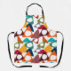 This apron has a mid-century modern design of scattered triangles, some with holes, in retro colours.