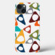 This phone case has a mid-century modern design of scattered triangles in retro colours with holes.