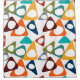 This shower curtain has a mid-century modern design of scattered triangles in retro colours with holes.