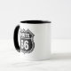 Route 66 road sign with triple outline and age-crack distress. T-shirts, sweats, cards, gifts.