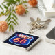 This large square premium metal keychain with its image of a Route 66 red, white and blue neon sign on black, is an appropriate party favour for a 20s, 40s, and 60s decade party!