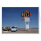 Route 66 and a real estate bargain rolled into one with this are of town for sale - a vintage motel and retro neon sign along a stretch of historic American highway through California desert.