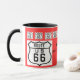 Route 66 coffee mug lets you create your own souvenir of a great driving vacation (or the road trip from hell) with this fun Route 66 design. This colourful mug is from a photograph of a genuine sign on America's historic, vintage highway. Long ago, it was THE major automobile artery of America from the Los Angeles area through Winslow, Arizona; Santa Fe and Albuquerque, New Mexico; Amarillo, Texas; and on to Chicago, Illinois.