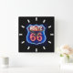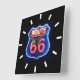 This 10.75” x 10.75” acrylic wall clock is an appropriate décor element for a 20s, 40s, and 60s decade party! Here is a neon red, white and blue Route 66 sign on black. White clock face.