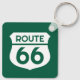 Route 66 state highway sign custom logo metal keychain. Automotive design. Historical classic state travel route. Custom colour and text.