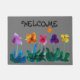 Welcoming Doormat with Row Of Pansies. Original Art By Heather Branchflower.