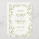 ROWAN Botanical Greenery. Wedding save the date photo card. Features, citrus moss green typography, botanical line art sketch illustration frame and single photo on back.