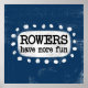 "Rowers Have More Fun" is a cute text design with a white accent shape surrounded by white whimsical dots.