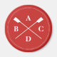 A smart red and white magnet for a keen rower, this has space for you to enter four initals (or a short word). The design displays crossed oars with a double 'stitched' white circle around them, on a red background.