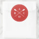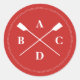 A smart red and white button for a keen rower, this has space for you to enter four initals. The design displays crossed oars with a double 'stitched' white circle around them, on a red background.