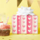 Rows of hearts in white, pink and red, over stripes of the same colours. A very playful design to give the same feeling of play and joy to your day.