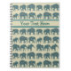 A cool Spiral Notebook or Journal, with rows of Elephant silhouettes, filled with a Dark Blue and Burgundy Paisley pattern, on a Beige background. Part of the Posh & Painterly 'Heffalumps' collection.