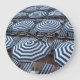 Rows Of Striped Beach Umbrellas With Sun Beds Large Clock