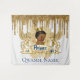 Adorable African Prince wearing a gold crown on top of a golden regal lion's crest and banner with a gold drip glitter and white diamond patterned background. “Prince” text in Royal Blue on the centre banner and “est. 2022” on the left and right. Customise with your own bottom text. ©2022 Miss Sassy Party Designs