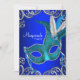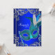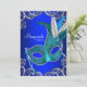 Elegant teal blue feather mask royal blue and teal blue masquerade party invitation. This elegant teal blue masquerade party invitation is easily customised for your event by simply choosing the "Customise it!" button to begin adding your event details, font style, font size & colour, and wording.