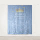 Create your own light baby blue and gold elegant backdrop tapestries to make your big day memorable! Send a big "welcome" to your guests with a large fabric sign/banner as they arrive... What are you celebrating? Whether it's a sweet 16/15 birthday party, dusty blue wedding, floral fiesta, a royal baby or bridal shower... these beautiful and easy DIY template tapestries can add that touch of sparkle and glam. The light blue and gold theme on this fabric prop can work for a Cinderella themed quinceanera and masquerade party too... The rustic floral design illustrated by Raphaela Wilson, depicts a lovely pattern of baby blue roses, a glamourous tiara crown of gold, and festive butterfly confetti. If you choose to edit the fairy tale design even further, additional faux metal options in silver, rose gold, and light blue can be seen. Simply click on the svg graphics, and you can change them to any desired colour - even the pretty watercolor rose pattern flowers! These custom photo backdrops can be personalised by you to perfectly match your party theme. Want to change the calligraphy script and modern typography? You can edit the fonts too. Enjoy! Category: personalised hanging wall backdrops for parties; dusty blue wedding photo backdrops; and royal baby shower tapestries for girl or boy. Baby blue gold wedding theme colours: light blue, white, and gold.