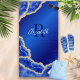 Royal Blue and Gold Elegant Marble Monogrammed Beach Towel