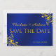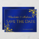 Royal blue and yellow golden floral embellished classy style save the date cards. Personalise with your own names and special date.