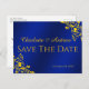 Royal Blue and Gold Save The Date Postcard