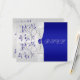 This royal blue and silver floral reply card matches the wedding invitation shown below. ****PLEASE NOTE that the ribbon and jewels are images, and are not real. The text is all customisable. The paper is also customisable. If you require any other items in this design, such as Save the Date cards, wedding programs, photo cards, table number cards, reception cards, wedding album etc., please email niteowlstudio@gmail.com. The matching items are shown below.