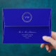 Simple, elegant, luxury, modern silver glitter and royal blue 5x7 envelope with return address and monogram - initials at the top flap.