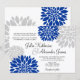 Royal Blue and Silver-Grey Floral Burst Wedding Invitation