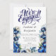 Royal Blue and Silver Peony We’re Engaged Invitation
