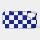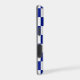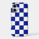 Protect your iPhone with a shock absorbing case featuring a classic royal blue and white checkered pattern. The design is made of rows of alternating white and blue squares.